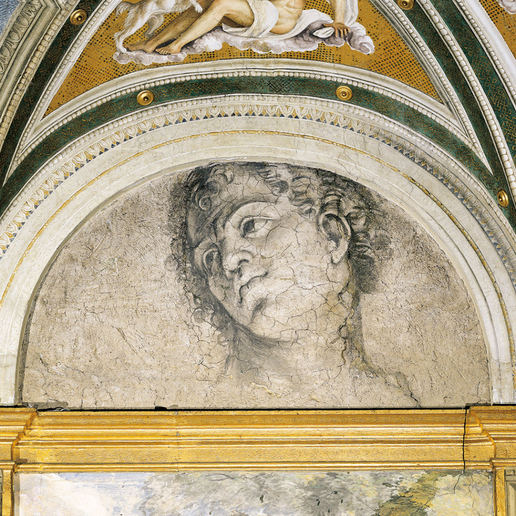 Nell’inverno 1511-1512 Sebastiano del Piombo, uno dei maggiori talenti pittorici veneziani, dipinse le scene mitologiche delle nove lunette con varie scene tratte dalle Metamorfosi di Ovidio e la gigantesca Testa di giovane.